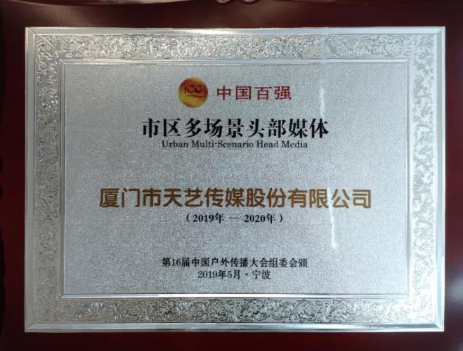廈門市天藝傳媒股份有限公司創(chuàng)立于1993年,業(yè)務范圍覆蓋品牌管理、創(chuàng)意策劃、整合營銷、媒體投放等傳播鏈條。公司發(fā)展26年,在戶外傳媒領(lǐng)域極具市場競爭優(yōu)勢,形成了城市路名牌、公交候車亭、站名牌、廈門國際郵輪中心媒體、廈門航空艙內(nèi)媒體、廈門機場手推車、網(wǎng)約車媒體等“海·陸·空”360°全媒體覆蓋。在此次會議中,廈門市天藝傳媒股份有限公司有幸榮獲《中國百強市區(qū)多場景頭部媒體》的獎項。